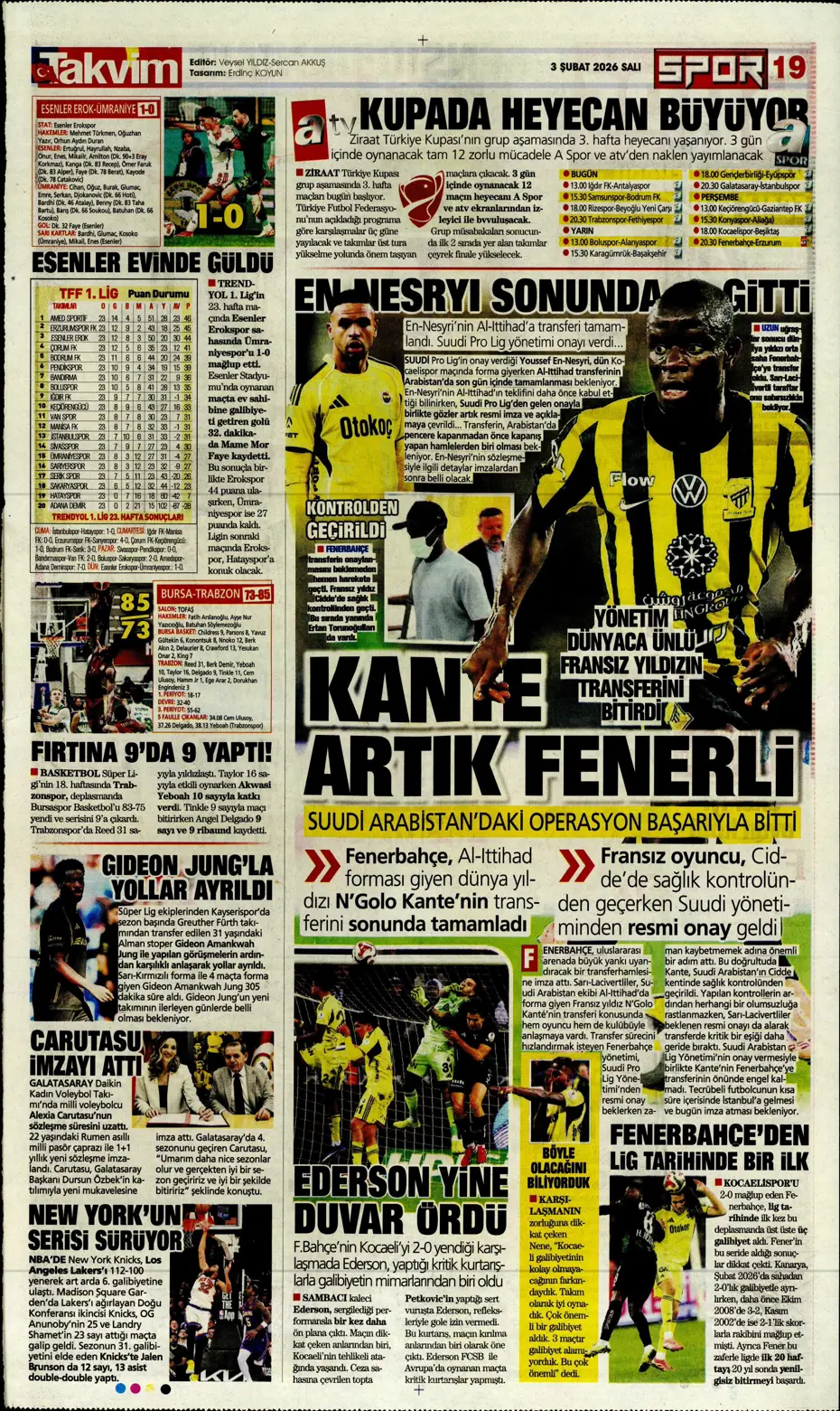 Spor manşetlerinde öne çıkan gelişmeler, transfer iddiaları, bahis skandalı ve Beşiktaş, Fenerbahçe, Galatasaray ile Trabzonspor’un gündemine 1 dakikada göz atın. İşte gazetelerin spor manşetleri…