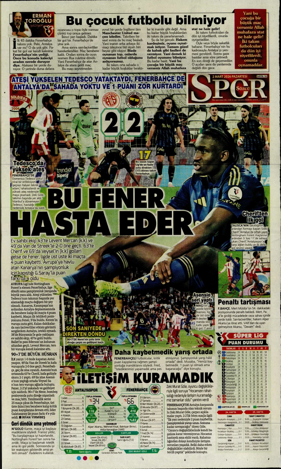 Günün spor manşetleri: ‘Fenerbahçe sakata geldi’