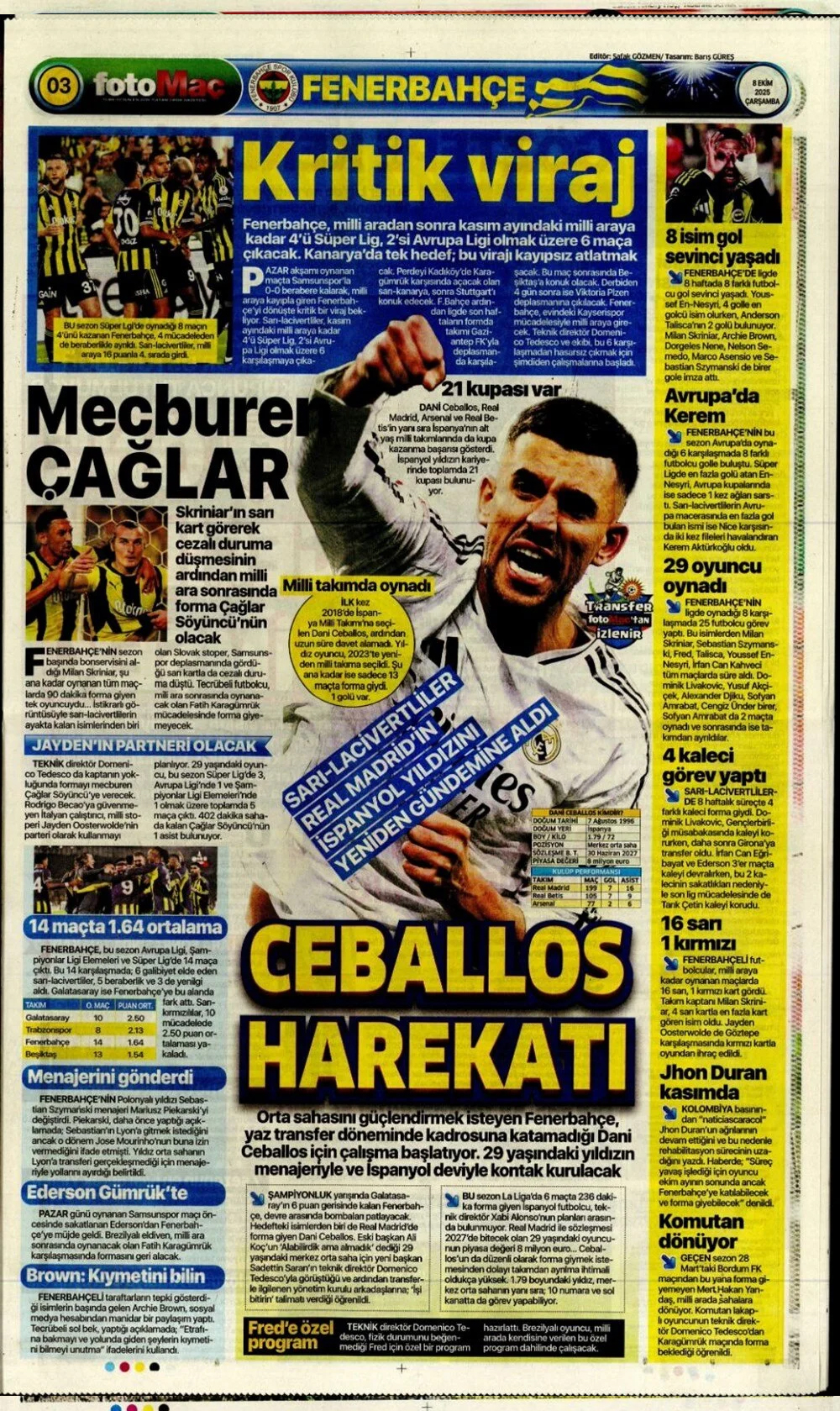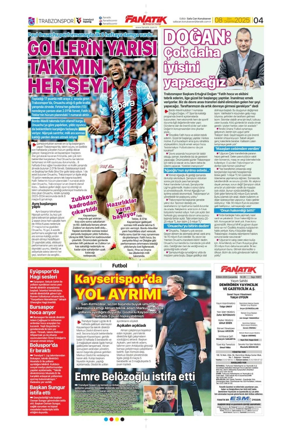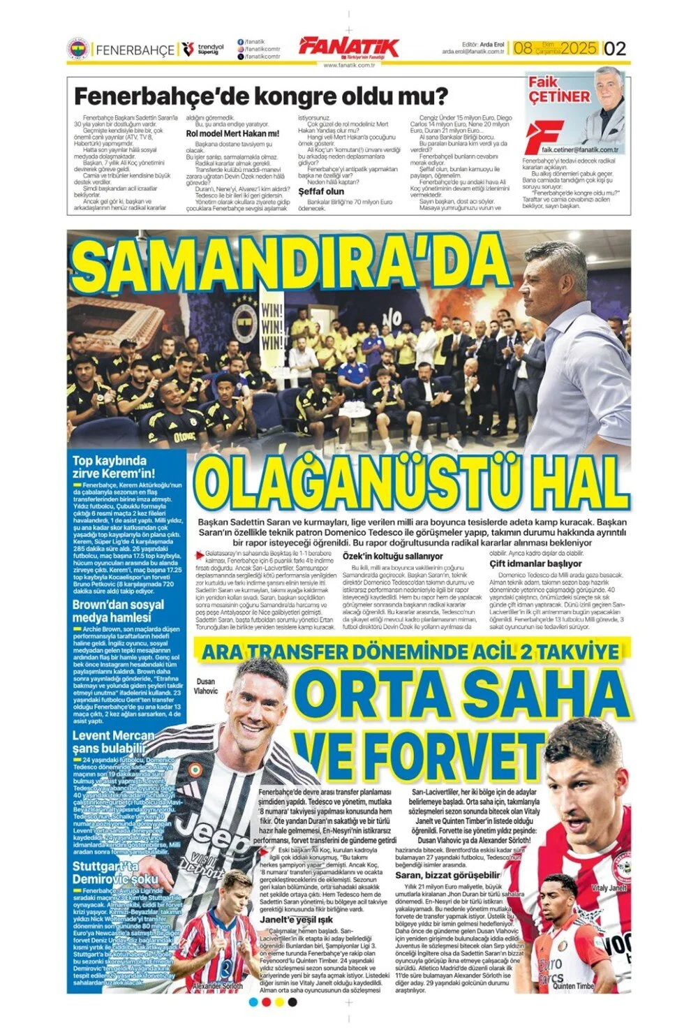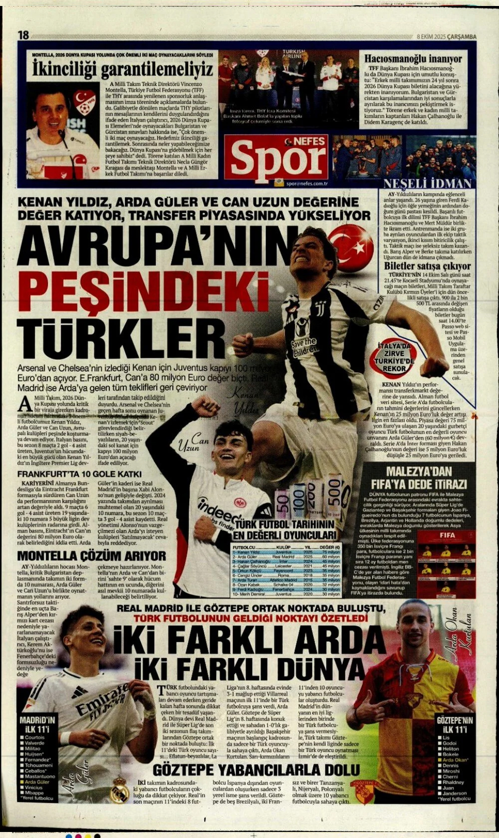 Günün spor manşetleri