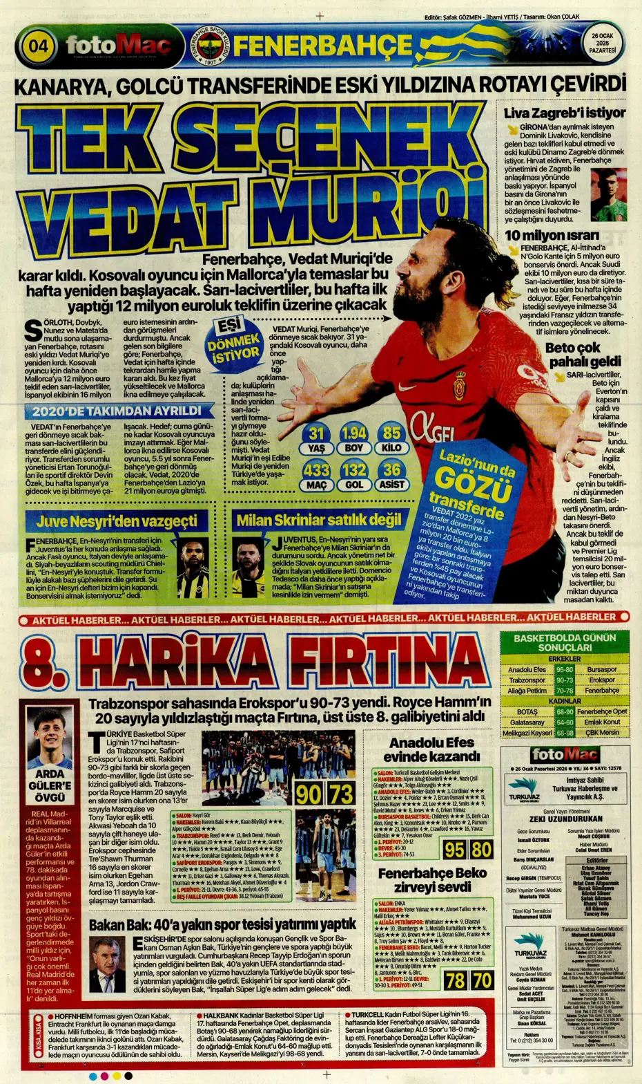 Spor manşetlerinde öne çıkan gelişmeler, transfer iddiaları, bahis skandalı ve Beşiktaş, Fenerbahçe, Galatasaray ile Trabzonspor’un gündemine 1 dakikada göz atın. İşte gazetelerin spor manşetleri…