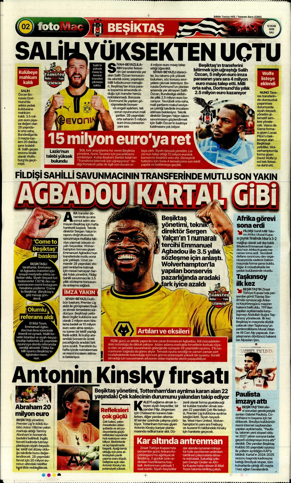 Spor manşetlerinde öne çıkan gelişmeler, transfer iddiaları, bahis skandalı ve Beşiktaş, Fenerbahçe, Galatasaray ile Trabzonspor’un gündemine 1 dakikada göz atın. İşte gazetelerin spor manşetleri…