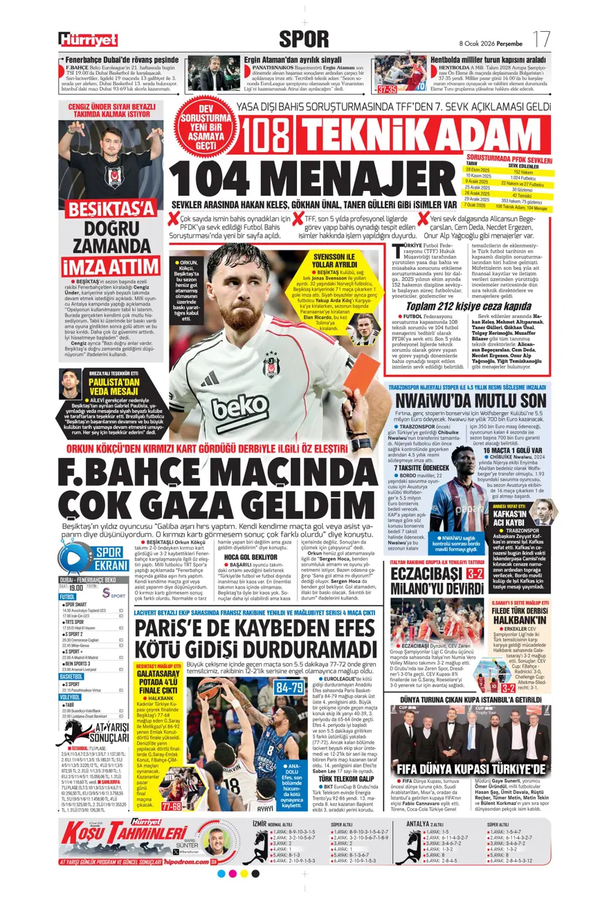Spor manşetlerinde öne çıkan gelişmeler, transfer iddiaları, bahis skandalı ve Beşiktaş, Fenerbahçe, Galatasaray ile Trabzonspor’un gündemine 1 dakikada göz atın. İşte gazetelerin spor manşetleri…