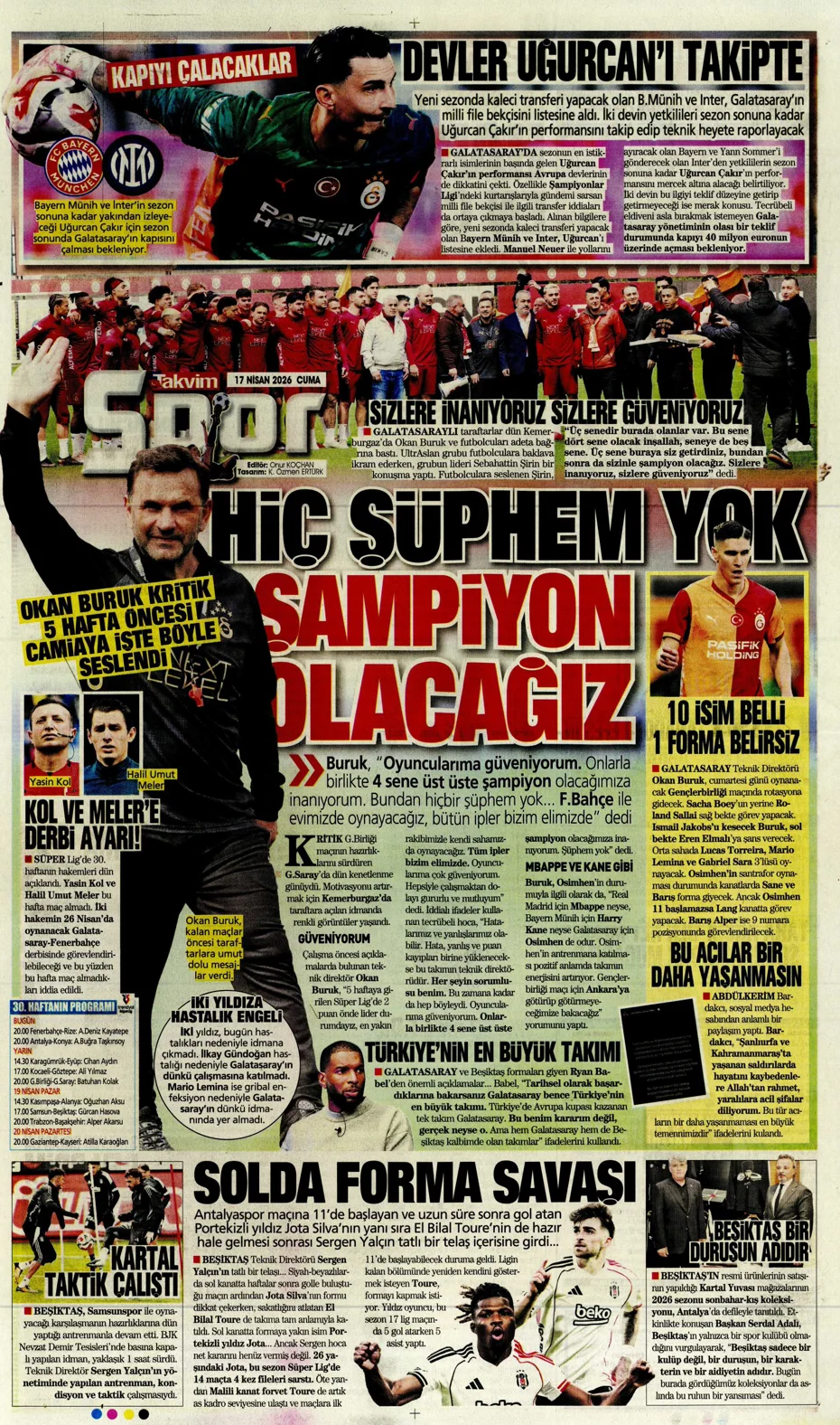 Günün spor manşetleri: Şampiyon biz olacağız'