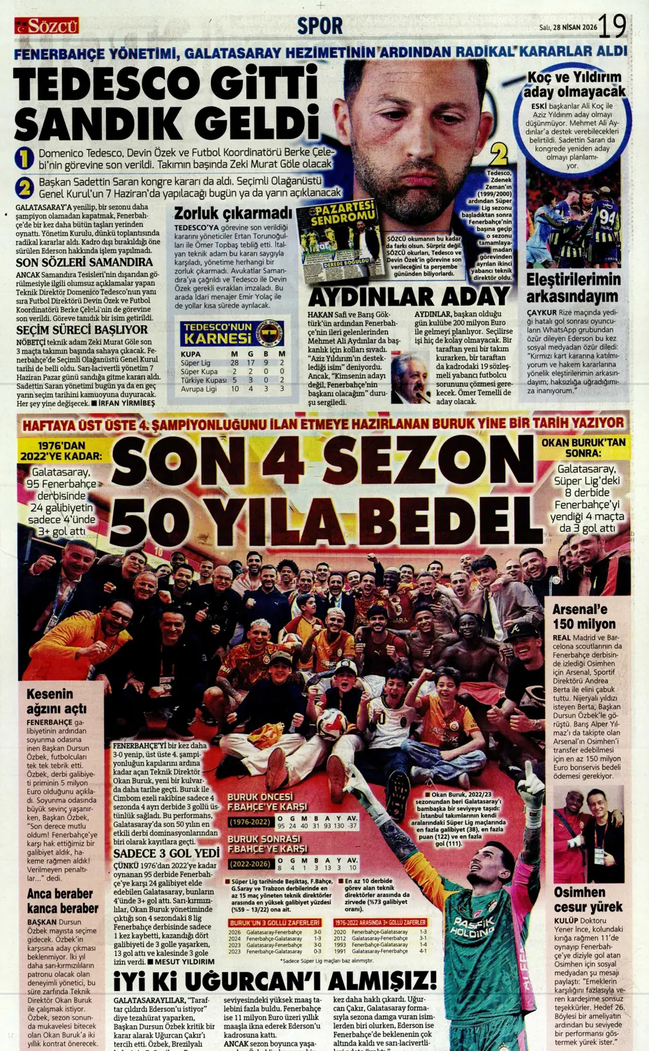 Günün spor manşetleri: 'Tedesco ve Özek gitti!'