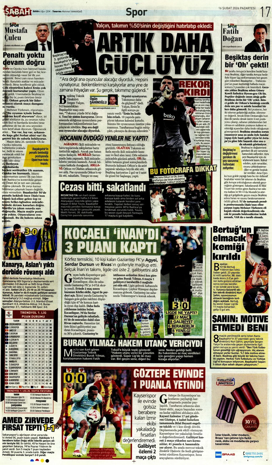 Günün spor manşetleri: ‘Tedesco’nun 3 sırrı’