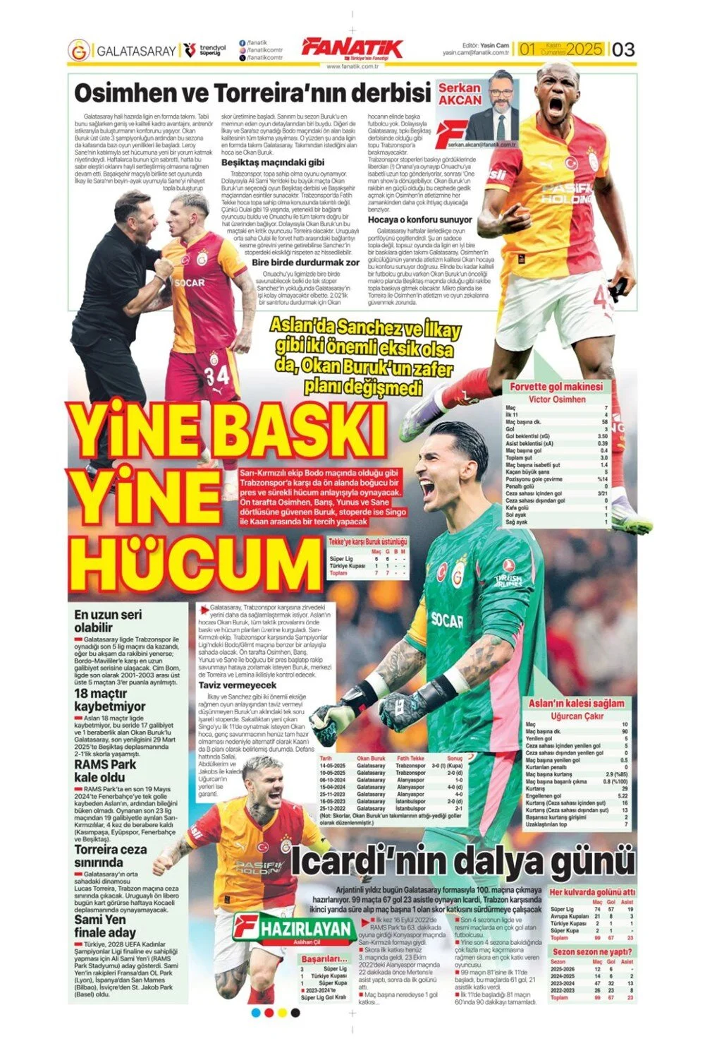 Günün spor manşetleri: Zirvede büyük kapışma!