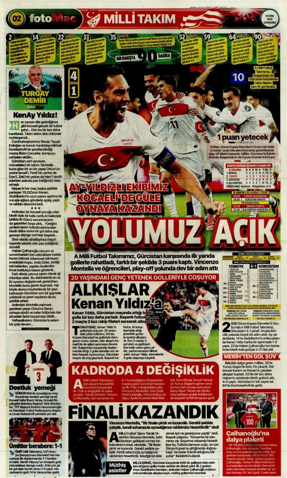 Turka Kocaeli Stadı'nda oynanan müsabakada Ay-Yıldızlılara galibiyeti getiren golleri; 14. dakikada Kenan Yıldız, 35. dakikada Yunus Akgün, 22 ve 52. dakikalarda Merih Demiral kaydetti. Gürcistan'ın tek sayısı 65. dakikada Kochorashvili'den geldi.