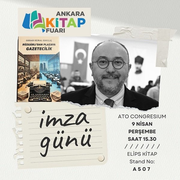 Gazeteci-yazar Orhan Kemal Erkılıç, 23. Ankara Kitap Fuarı’nda okurlarıyla bir araya geliyor. Basın Müşaviri olarak mesleğine devam eden Orhan Kemal Erkılıç, 9 Nisan Perşembe günü saat 15.30’da düzenlenecek imza gününde, ikinci kitabı “Rüzgârlı’dan Plazaya Gazetecilik”i Elips Kitap standında okuyucular için imzalayacak.