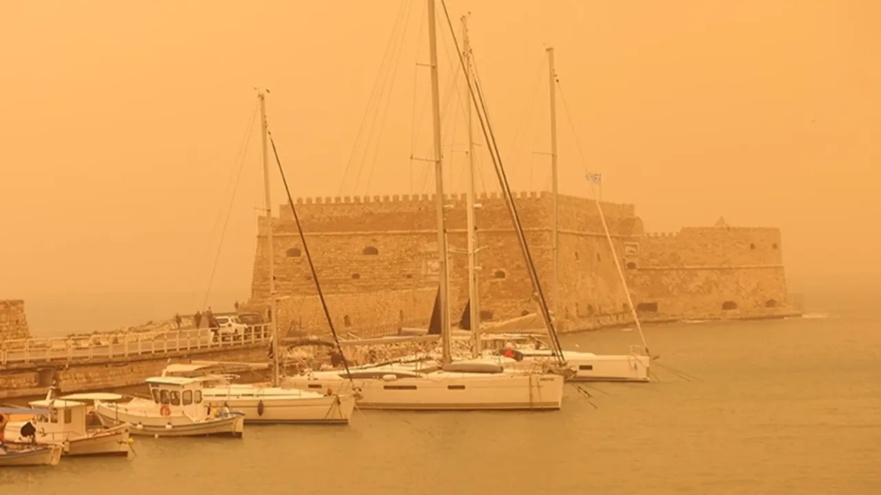 Yunanistan’da bağlı Girit Adası’nda Afrika’dan gelen çöl tozu hayatı olumsuz etkiledi. Ada, kırmızıya bürünürken, görüş mesafesi önemli ölçüde düştü. Ada’ya sefer yapan en az iki uçak görüş mesafesinin düşmesi nedeniyle rotasını değiştirmek zorunda kaldı.