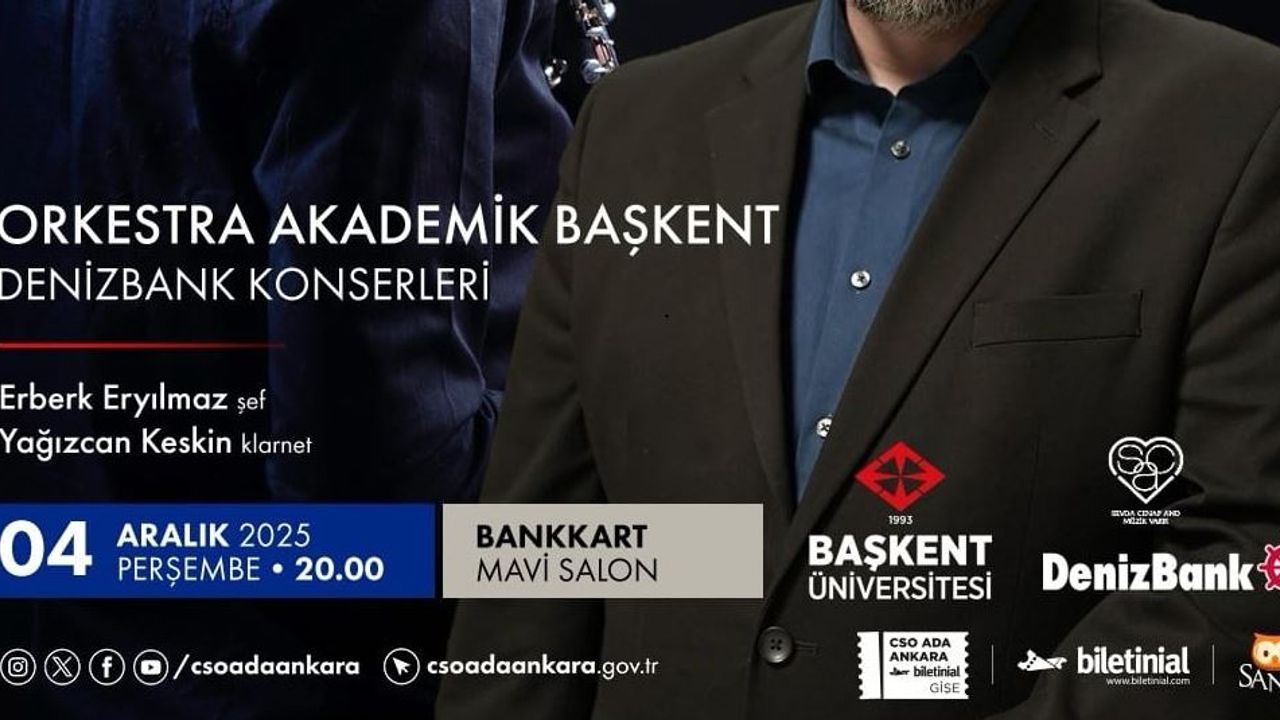Sevda-Cenap And Müzik Vakfı’nın üç sezondur sponsoru ve çözüm ortağı olduğu Orkestra Akademik Başkent, DenizBank konserler serisinin Aralık ayındaki ilk buluşmasında özel bir programa imza atacak. Konserde, Grammy ödüllü besteci ve orkestra şefi Erberk Eryılmaz ile uluslararası ödüllere sahip klarinet virtüözü Yağıcan Keskin sahne alacak.