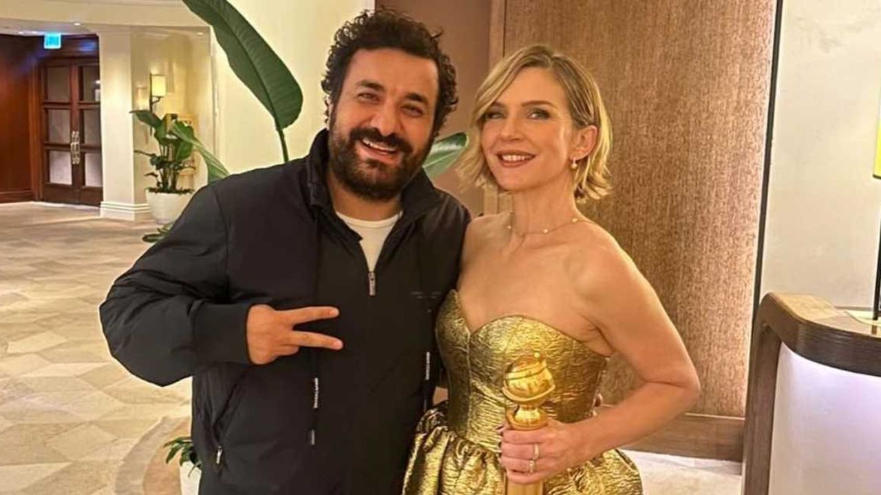 "Üzerimde eşofmanla, lobide bugün Altın Küre'de en iyi kadın oyuncu ödülünü alan Rhea Seehorn ile karşılaştım. Macera devam ediyor... (Bu arada kendisi çok mütevazı ve pozitif bir insan)."