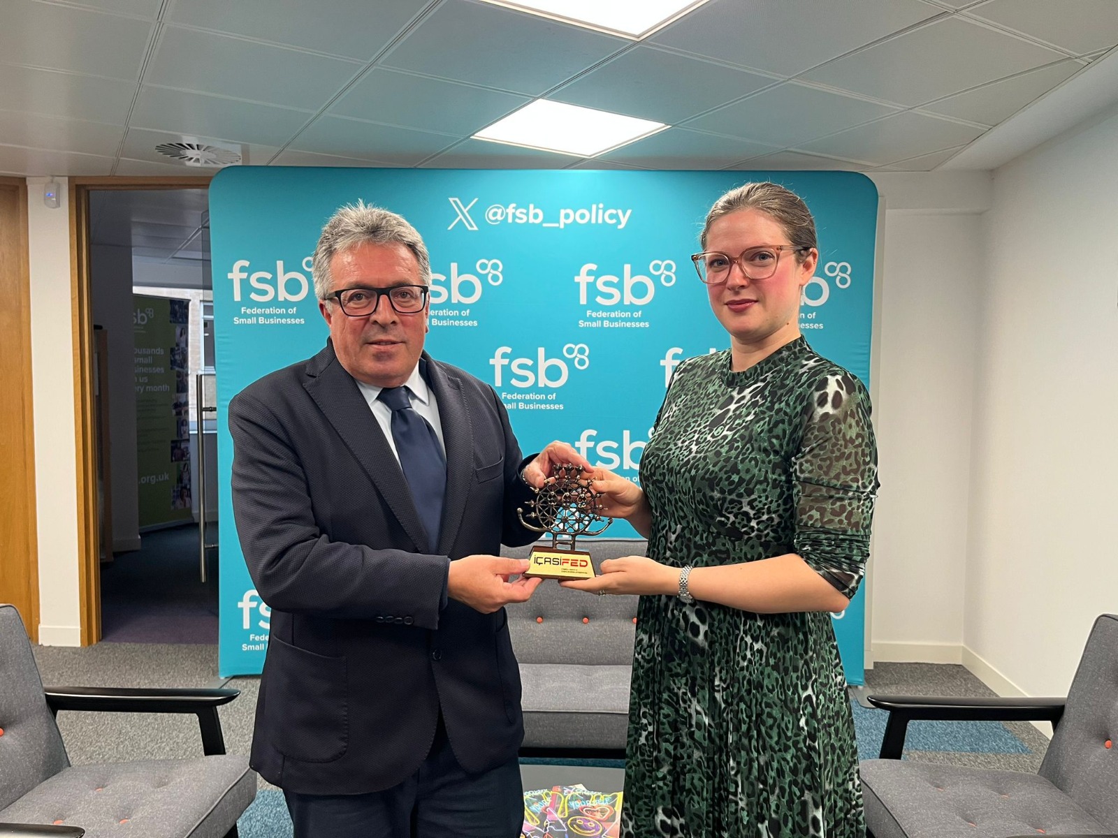 İÇASİFED heyeti, kurumsal ziyaretlerin ikinci gününde Federation of Small Businesses ile görüşerek KOBİ’lerin önemi ve etki alanları hakkında istişarelerde bulunuldu. Ziyarette, Londra Büyükelçiliği Hazine ve Maliye Başmüşaviri Ahmet Yalçın Yalçınkaya’da İÇASİFED heyetine eşlik etti.