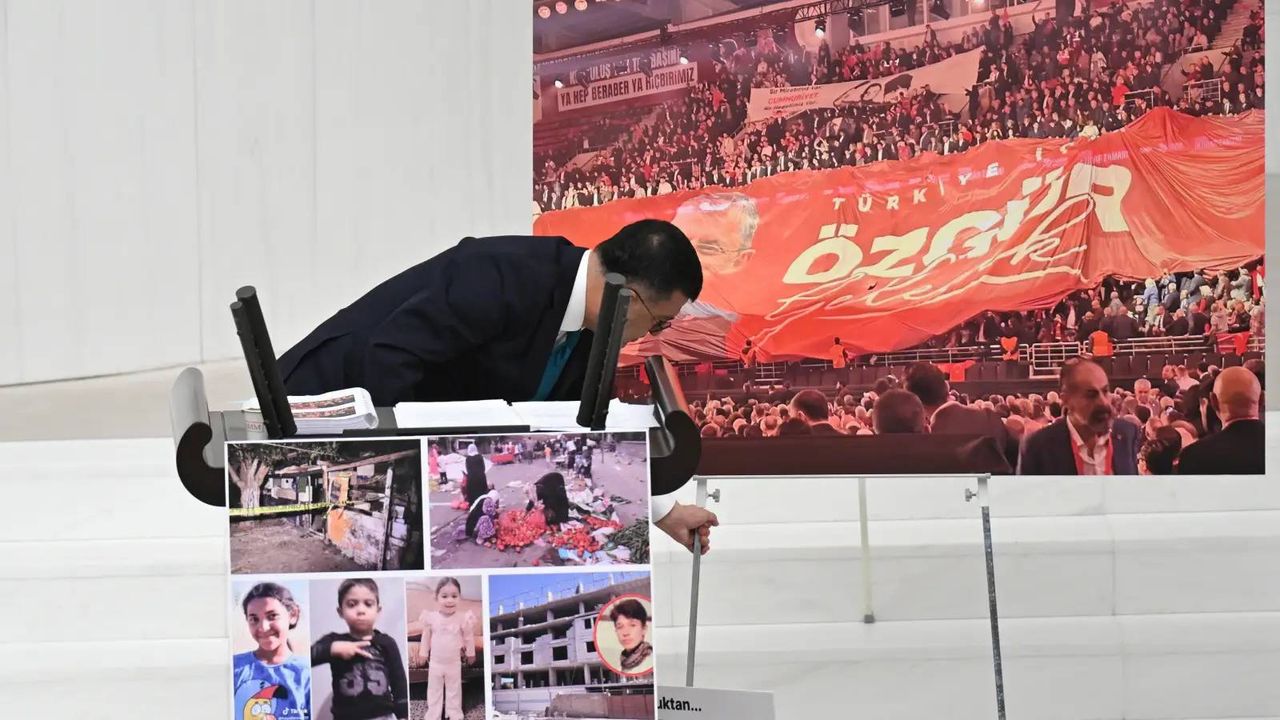 Malatya Milletvekili Veli Ağbaba, TBMM Genel Kurulu'nda 2026 yılı bütçe görüşmelerinin son gününde, CHP Grubu adına söz aldı. Ağbaba kürsüye Özgür Özel'in genel başkan seçildiği CHP’nin 38. Olağan Kurultayı’nda açılan ve İBB iddianamesinde de geçen 'Özgür Gelecek' pankartının yer aldığı bir fotoğrafla çıktı.