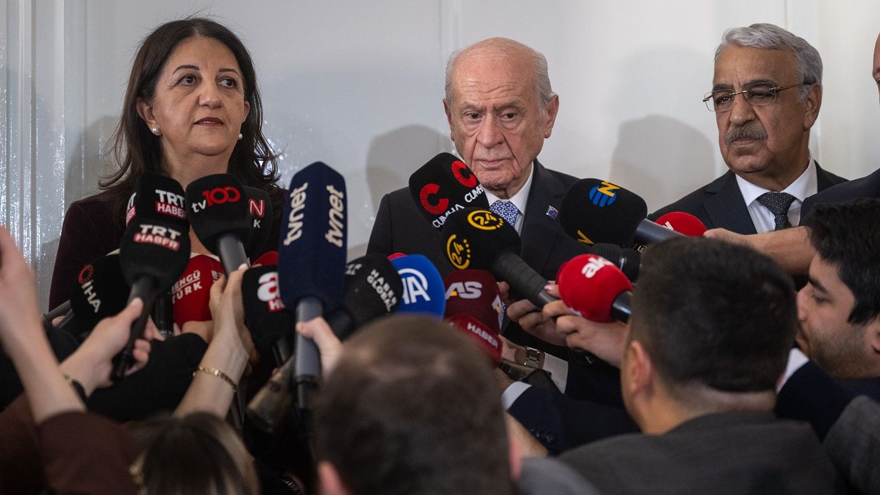 "Sürecin geldiği aşama itibariyle yeni bir zemin üzerinde ya da yeni bir aşama üzerinde ilerlemek gerektiğini düşünüyoruz. İkinci aşamaya geçtiğimizi söylemek gerekiyor. İkinci aşamada da yasal, hukuki bir zemine ihtiyaç var. Yasal bir düzenlemeye ihtiyaç var. Bu yasal düzenleme elbette ki bir barış yasası olmalıdır. Bunu özellikle ifade etmek istiyoruz. Şimdi bundan sonra hem komisyonun hem siyasi partilerin yapacağı çalışmalar bu düzeyde önemli olacaktır. O yüzden biz de kendi görüşlerimizi Sayın Bahçeli'ye aktardık. Yasaya dair beklentilerimizi ve kendilerinin katkılarını istedik. Zaten Sayın Bahçeli'nin sürecin başından beri çok kıymetli katkıları oldu, bundan sonra da olacağına yürekten inanıyoruz. Bu noktada kendisine ve heyetine bir kez daha teşekkür ediyoruz."