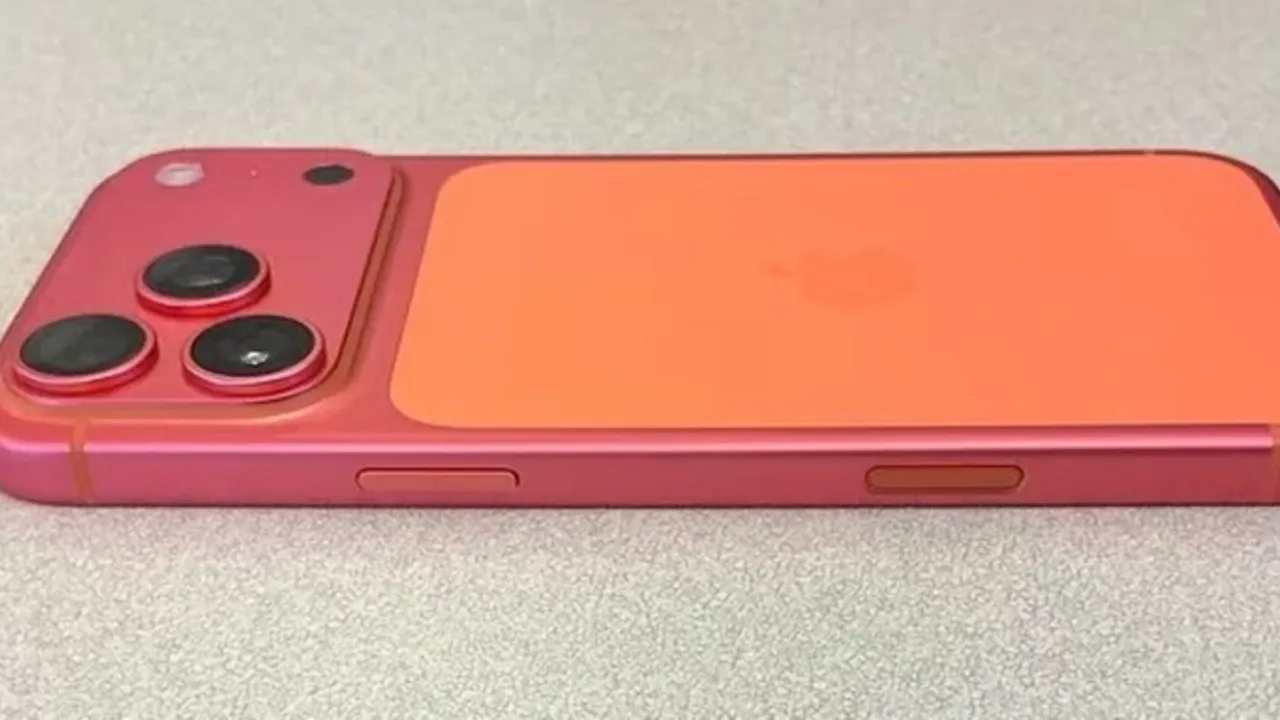 Sosyal medyada paylaşılan bir fotoğrafta "Kozmik Turuncu" rengine sahip iPhone 17 Pro'nun zaman içinde pembe renge döndüğü görülüyor.