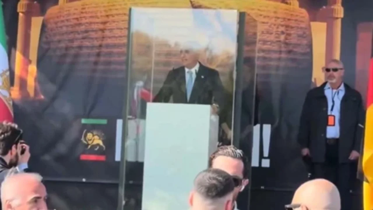 Rıza Pehlevi, Almanya ziyareti sırasında yaşanan güvenlik olayının ardından katıldığı etkinlikte dikkat çeken bir önlemle sahneye çıktı.