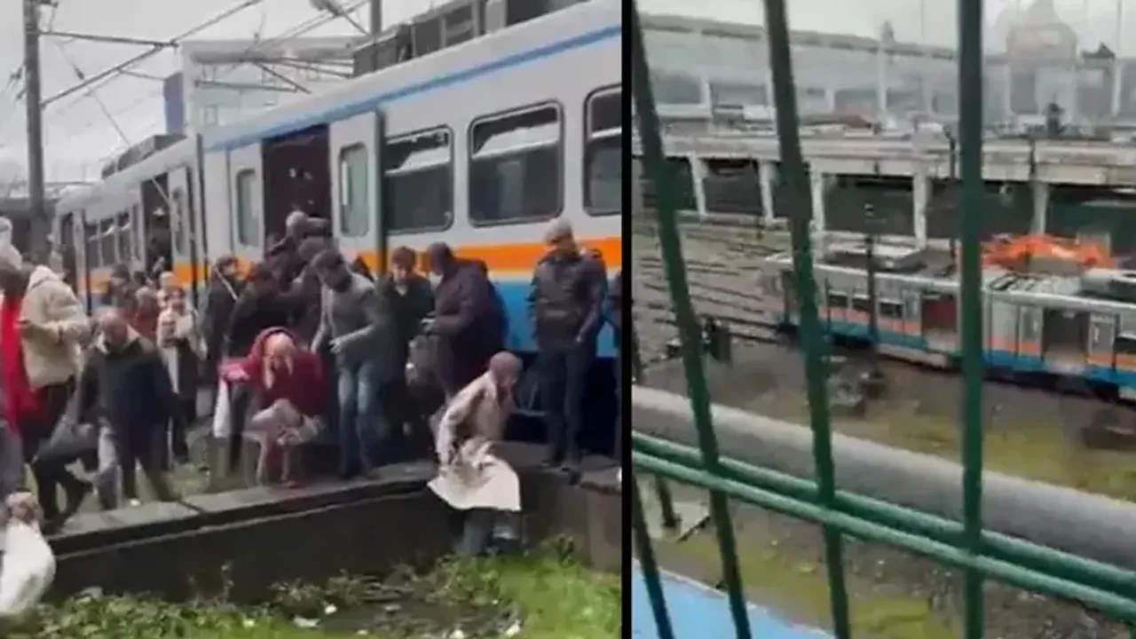Yolcular buradan tahliye edilirken ekipler raydan çıkan metro için çalışma başlattı.