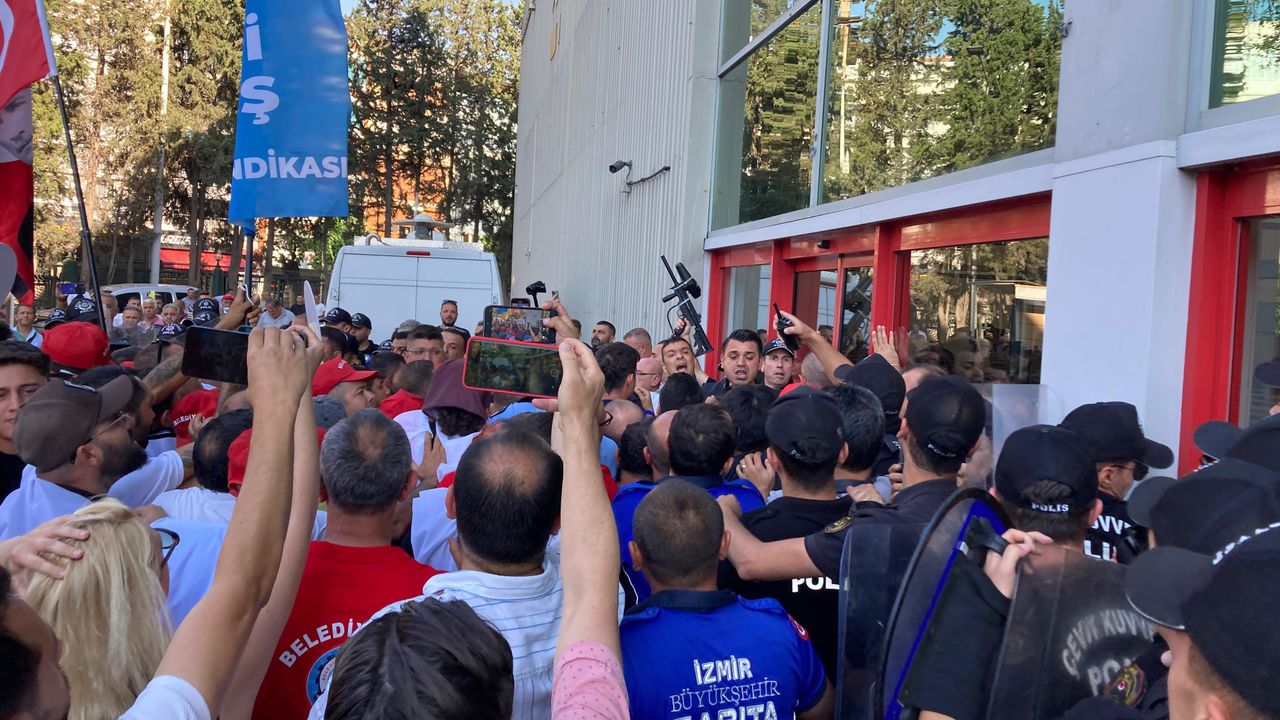 Sendika, emniyetle yürüttüğü müzakerede 10 kişilik bir heyetin meclise alınması talebinde bulundu. İşçilerin içeri girmesine polis ve zabıta biber gazıyla engellerken "Baskılar bizi yıldıramaz", "Hak, hukuk, adalet", "Faşizme karşı omuz omuza" sloganları atıldı. Bir işçi çıkan arbedede aldığı darbe sonucu baygınlık geçirdi.