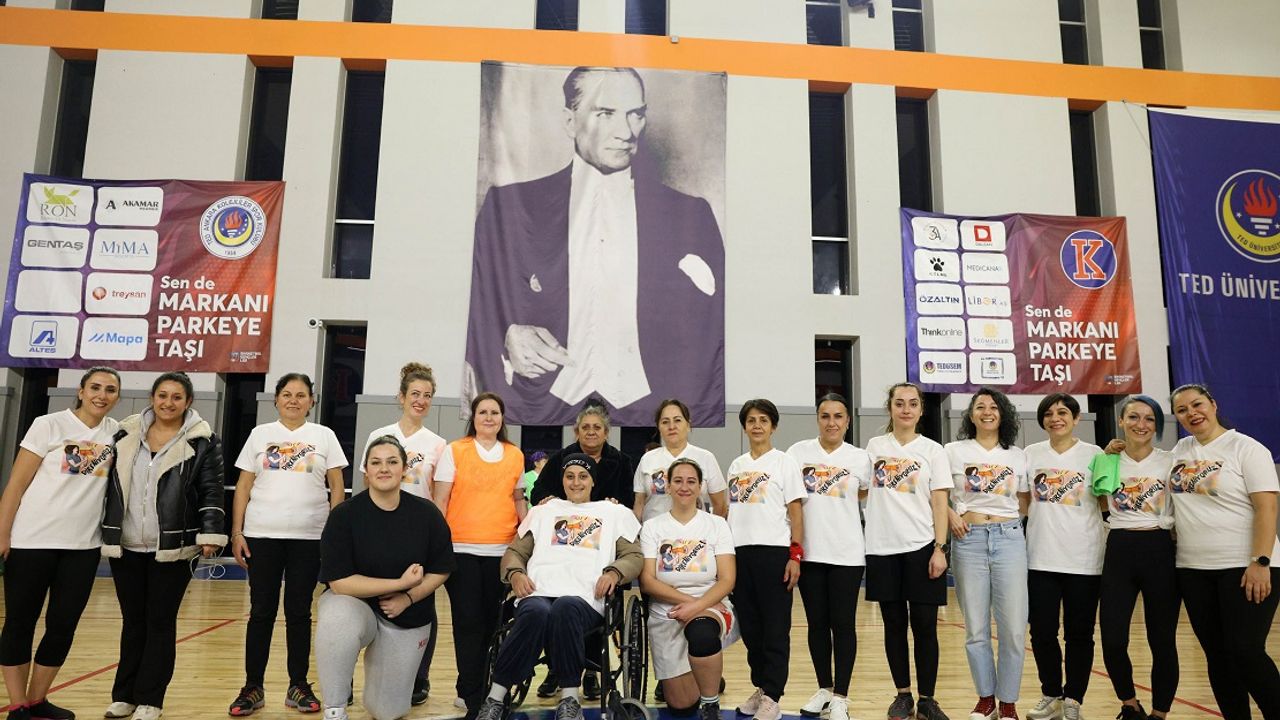 TED Üniversitesi Kapalı Spor Salonu’nda gerçekleşen etkinlikte kadınlar, spor aracılığıyla hem dayanışmayı hem de yaşam hakkını savundu.