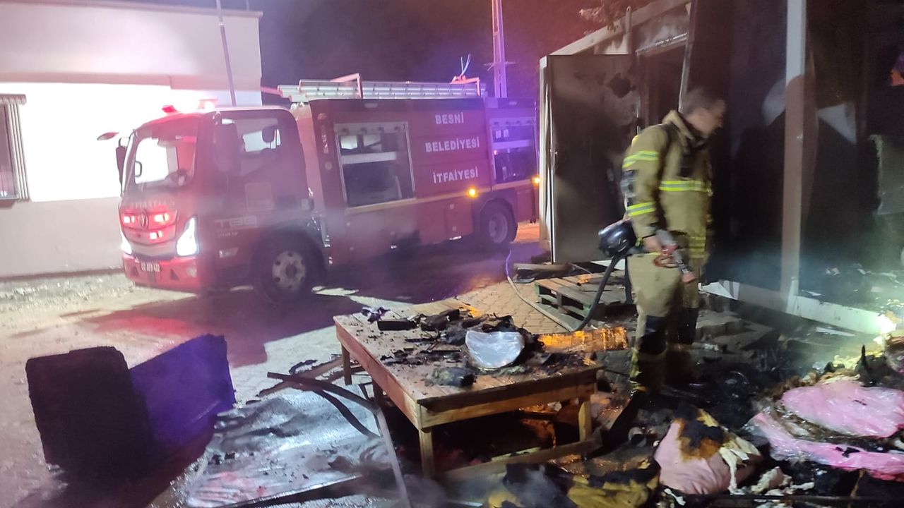 Sarıkaya köyünde yalnız yaşayan Ayşe Yıldız'ın kaldığı konteynerde, gece saatlerinde yangın çıktı.