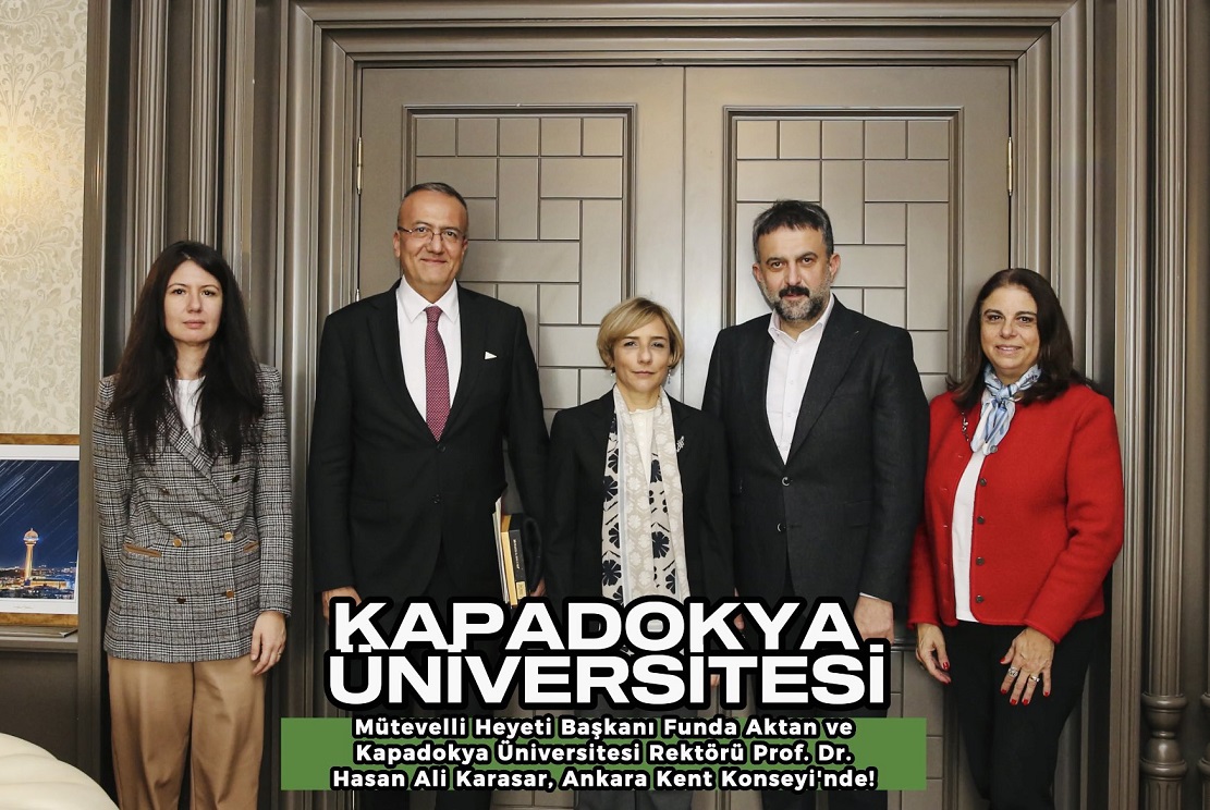 Yazar Alev Alatlı’nın kızı, Kapadokya Üniversitesi Mütevelli Heyeti Başkanı Funda Firuz Aktan ile Kapadokya Üniversitesi Rektörü Prof. Dr. Hasan Ali Karasar, Ankara Kent Konseyi (AKK) Başkanı Halil İbrahim Yılmaz’ı ziyaret etti. Görüşmede akademik iş birliği, yerel yönetim uygulamaları ve sivil toplum çalışmalarına ilişkin değerlendirmelerde bulunuldu.