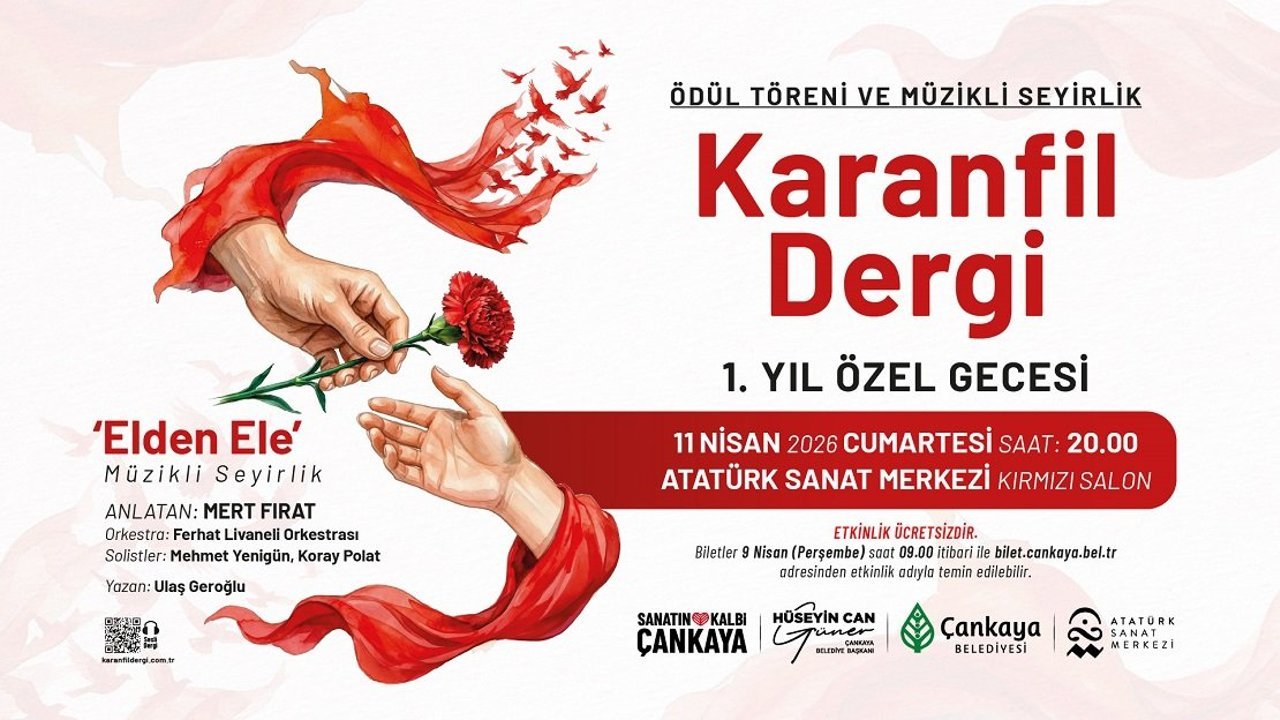 Karanfil Dergi’nin birinci yılına özel etkinlik, Cumartesi günü saat 20.00’de Çankaya Belediyesi Atatürk Sanat Merkezi Kırmızı Salon’da gerçekleştirilecek. Ücretsiz olarak düzenlenecek etkinliğin biletleri, 9 Nisan Perşembe günü saat 09.00 itibarıyla belediyenin internet adresi üzerinden temin edilebilecek.