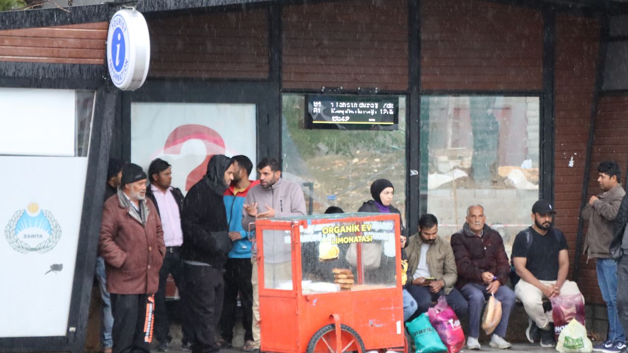 Yağışa hazırlıksız yakalananların bazıları otobüs duraklarında sağanağın dinmesini beklerken, bazıları ise şemsiyelerle yağmurdan korunmaya çalıştı.