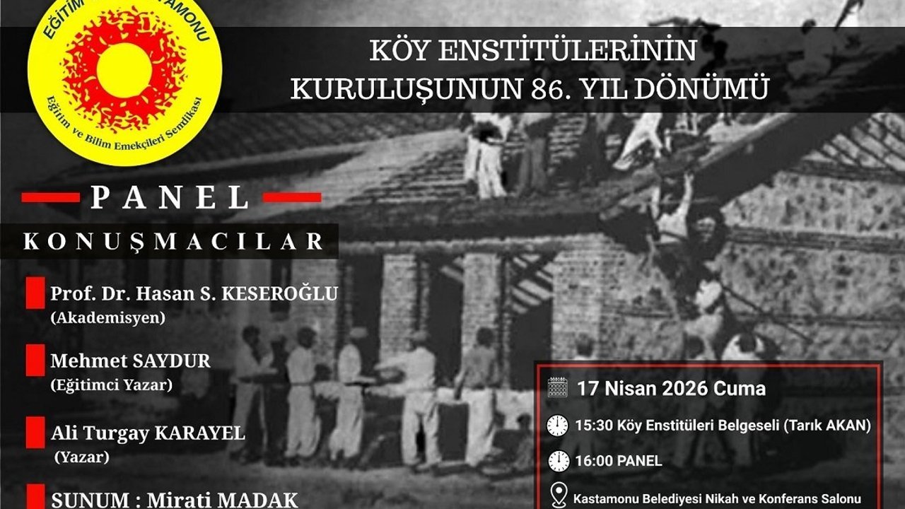 Eğitim ve Bilim Emekçileri Sendikası tarafından organize edilen etkinlikte, Köy Enstitülerinin tarihsel önemi ve günümüze etkileri ele alınacak. Program, 17 Nisan 2026 Cuma günü saat 15.30’da Tarık Akan’ın anlatımıyla hazırlanan Köy Enstitüleri belgeselinin gösterimiyle başlayacak. Ardından saat 16.00’da panel oturumuna geçilecek.