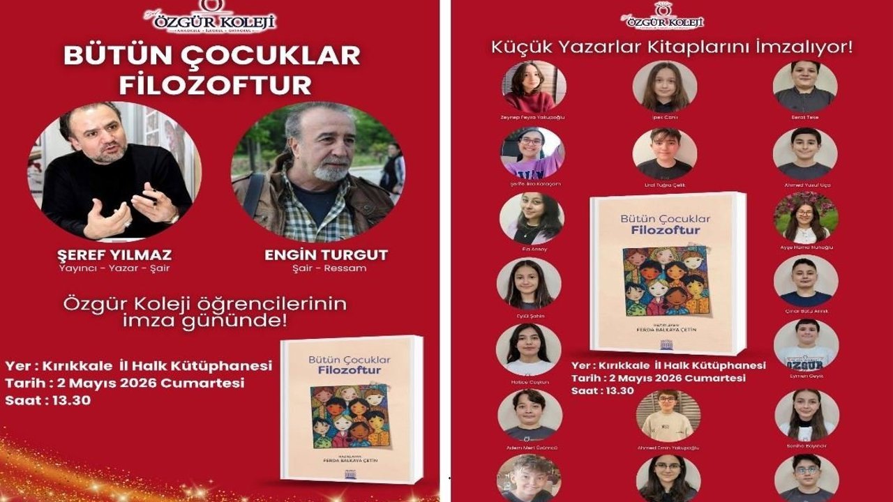 Özgür Koleji, öğrencilerinin yazarlık deneyimini taçlandıran anlamlı bir etkinliğe ev sahipliği yapıyor. “Bütün Çocuklar Filozoftur” adlı kitapta yer alan küçük yazarlar, eserlerini okurları için imzalayacak.