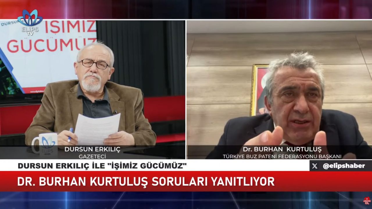 Türkiye Buz Pateni Federasyonu Başkanı Dr. Burhan Kurtuluş, Elips TV’de yayımlanan İşimiz/Gücümüz programında Dursun Erkılıç’ın sorularını yanıtladı. Genç sporcuların keşfinden antrenör eğitimine, tesisleşmeden pazarlamaya kadar pek çok başlıkta çarpıcı mesajlar verdi.