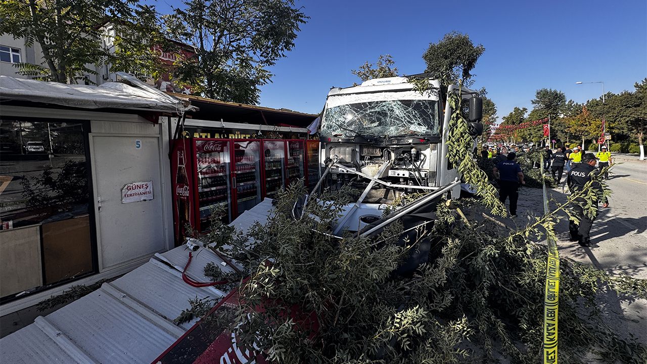 Kamyon yol kenarındaki 7 konteyner iş yerine çarptı.