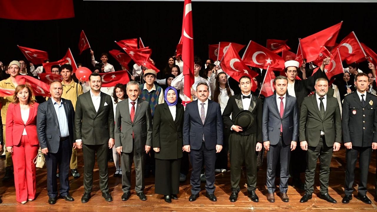 Programın sonunda öğrenciler ve katılımcılar, ellerinde Türk bayraklarıyla sahneye çıkarak Cumhuriyet coşkusunu birlikte yaşadı.