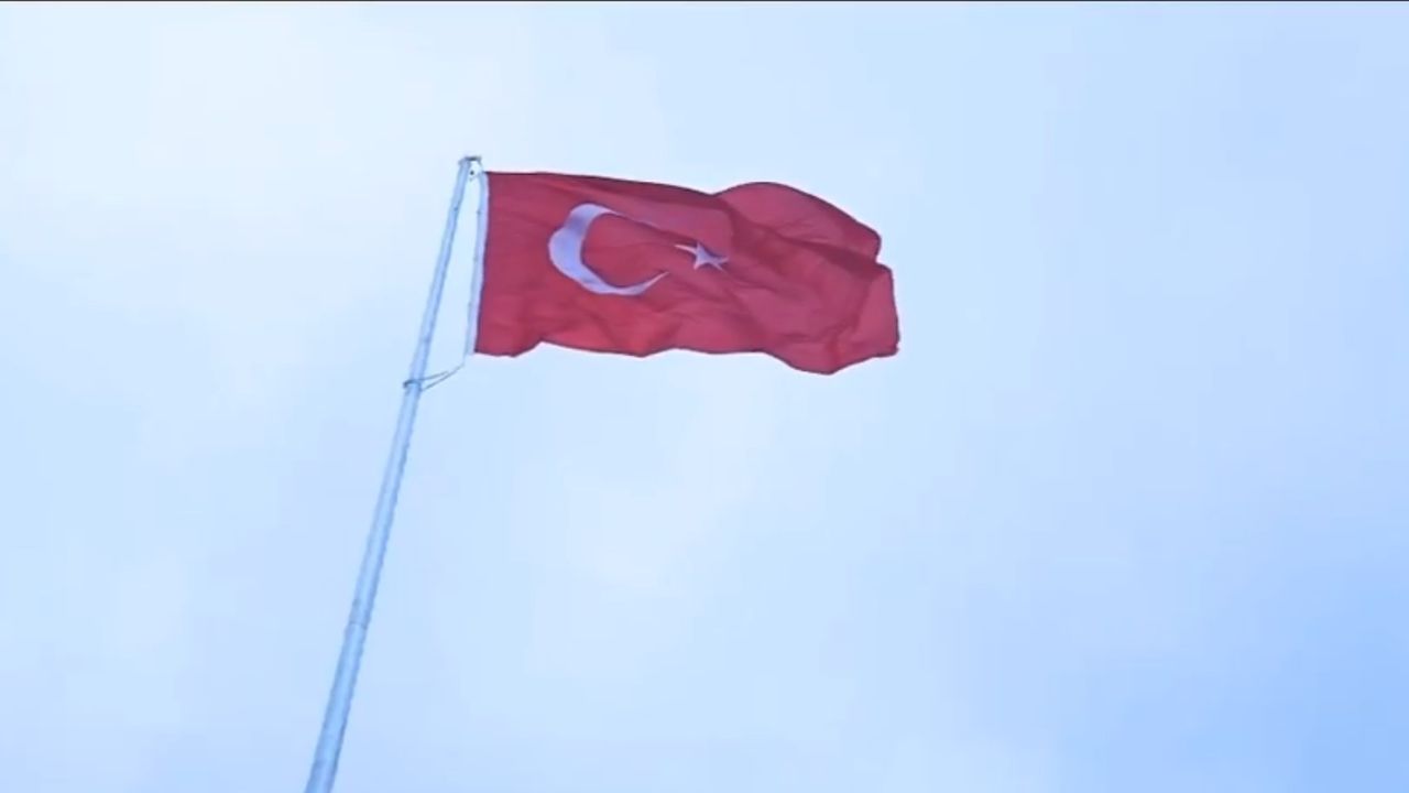 Suriye'nin Kamışlı kentinin Türkiye'ye en yakın noktası olan alana, gerekli önlemlerin alınmasının ardından, 30 metre uzunluğunda bir bayrak direği yerleştirildi ve dev Türk bayrağı göndere çekildi.