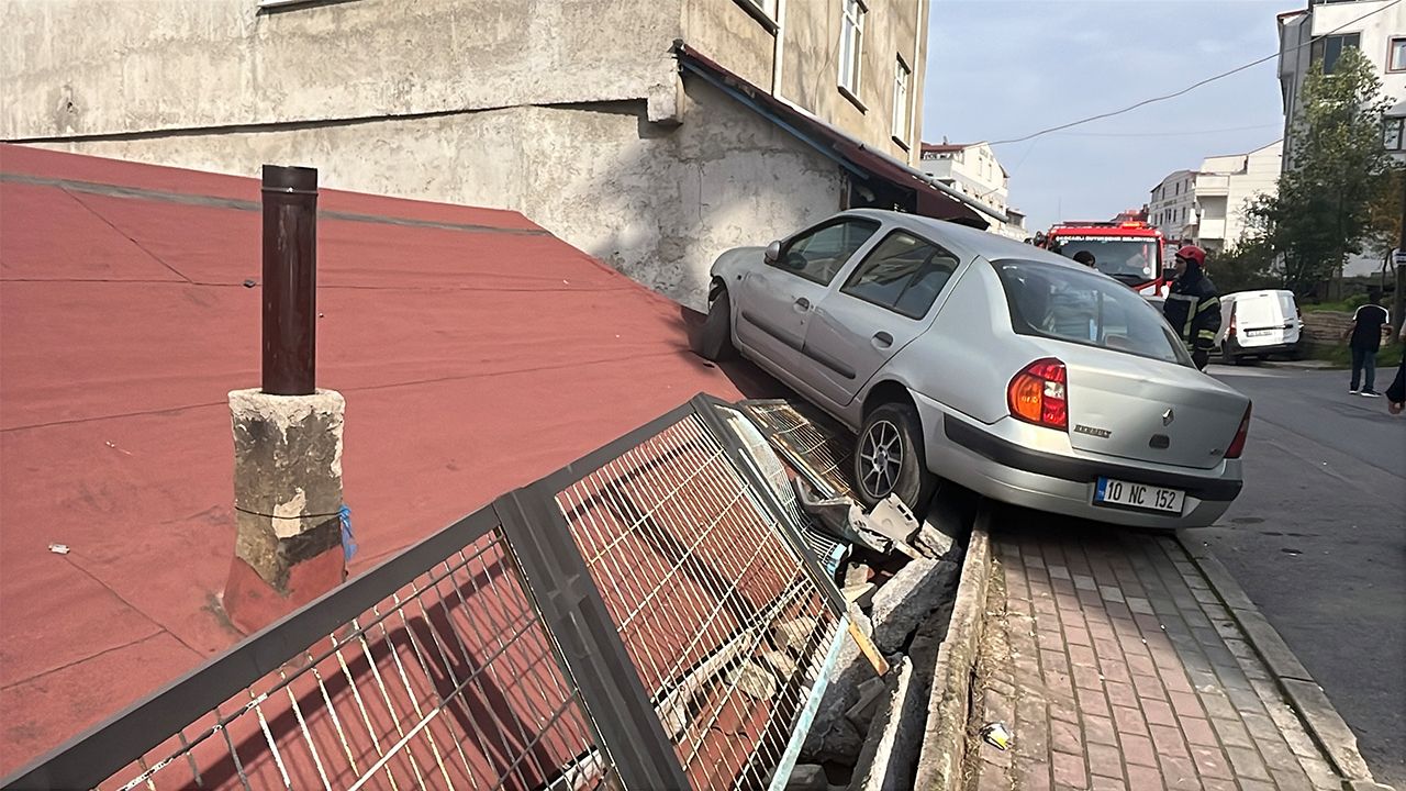 Savrulan otomobil, kaldırımdaki korkulukları aşıp yol seviyesinin altında kalan tek katlı evin çatısına çıktı. İhbar üzerine bölgeye itfaiye, sağlık ve polis ekipleri sevk edildi. Polis, yolu şeritle kapatıp güvelik önlemi aldı. Kazada yaralanan olmadı, eve girişler ise tedbiren yasaklandı.