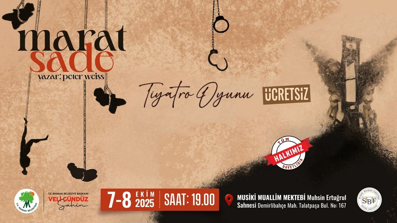 Mamak Belediyesi, kültür ve sanat etkinlikleriyle ilçe halkını sanatla buluşturmaya devam ediyor. Bu kapsamda, dünya tiyatro tarihinde çarpıcı bir yere sahip olan Peter Weiss’ın Marat/Sade adlı oyunu, Ankara Üniversitesi Siyasal Bilgiler Fakültesi tiyatro topluluğu tarafından sahnelenecek.