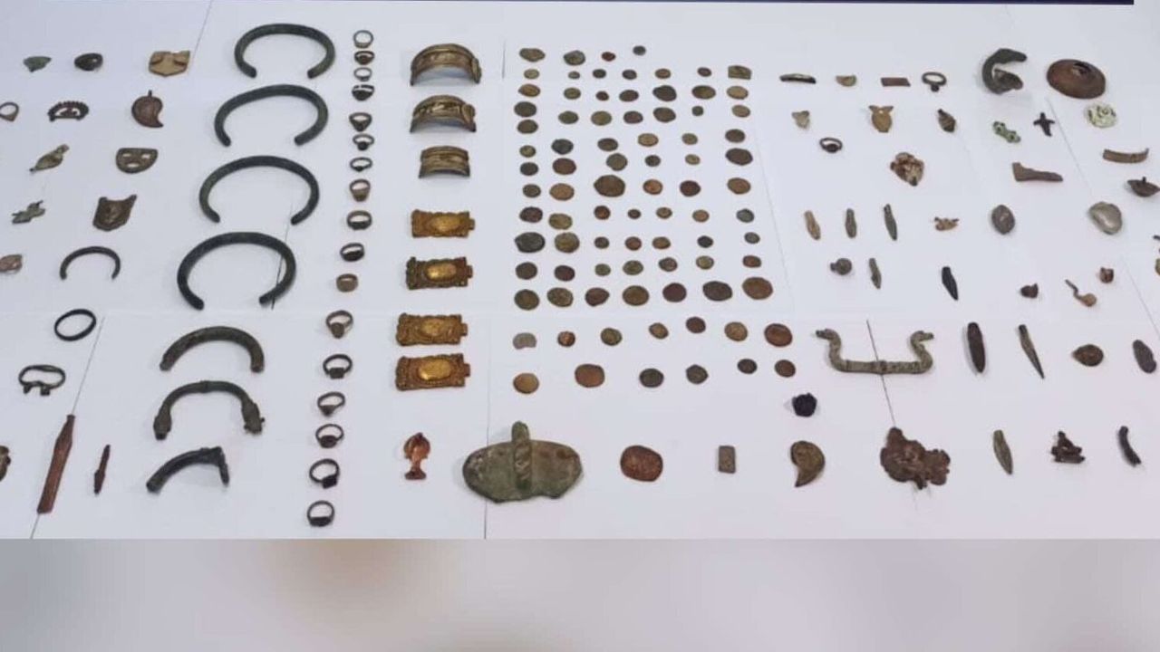 Operasyon kapsamında ekipleri tarafından araçta yapılan aramalarda 8 bin 582 adet tarihi eser ele geçirildi. Yapılan incelemelerde Bizans, Orta Çağ, Avrupa, Roma İmparatorluğu ve İslami döneme ait sikkeler, 44 adet bronz döküm geyik, karaca ve keçi başı figürler (1 adedi köpek), 25 adet bronz, demir, bakır alaşımlı insan figürleri, mini büstler, asker figürleri ve liturjik figürler, 17 adet bronz, kurşun ve demir pandatifler, figür siluetleri, insan hayvan figürleri, 23 adet pandantfiler, parmak parçası (heykelden parça), haç kolye, litürjik ve alegorik formlarda muhtelif figürler, 57 adet bronz ve bakır muhtelif hayvan figürleri, 118 adet bazıları kırık olan gümüş, bakır ve bronz yarı değerli taşlı aplikli, mühür yüzükleri ve kadın erkek yüzükleri, 235 adet muhtelif cins renkli, desenli, ortası delik taş ve cam imali boncuk çeşitleri, pişmiş toprak mavi sırlı boncuklardan bir grubunun tespit halinde ipe dizili olduğu, (insan figürlü formlardan 1 adedinin plastik döküm olduğu ve yeni üretilmiş malzemeden olduğu) belirlenen eserlere el konuldu. Ön ekspertiz raporunda, objelerden sadece birinin taklit olduğu, geri kalan 8 bin 581 parçanın ise 2863 sayılı yasa kapsamında korunması gereken arkeolojik ve etnografik eser olduğu belirlendi.