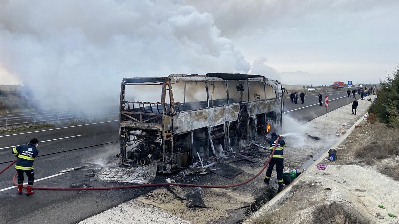 Ankara- Eskişehir kara yolunun Polatlı ilçesi yakınlarında bugün öğle saatlerinde Başkent Turizm'e ait seyir halindeki yolcu otobüsünün motor bölümünde dumanlar çıkmaya başladı. Durumu fark eden şoför, aracı yol kenarına çekerek yolcuları indirdi. Alevler kısa sürede büyüyerek otobüsü tamamen sardı. İhbar üzerine bölgeye polis ve itfaiye ekipleri sevk edildi. Ekiplerin müdahalesiyle yangın söndürülürken, otobüs kullanılamaz hale geldi. Güvenlik gerekçesiyle yolun bir bölümünde trafik kontrollü olarak sağlandı.