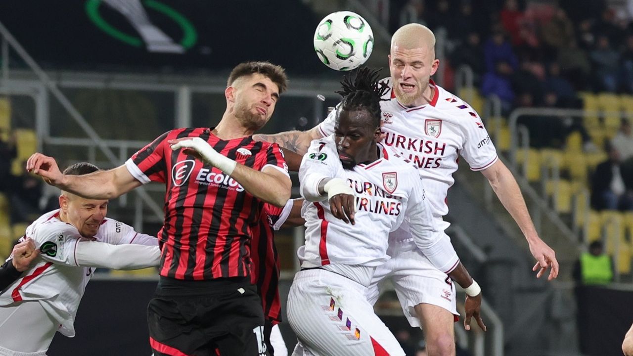UEFA Konferans Ligi Son 16 Play-Off Turu ilk maçında Samsunspor, deplasmanda karşılaştığı Makedonya temsilcisi Shkendija’yı 1-0 mağlup etti. 7’nci dakikada Assoumou’nun ceza sahasında yerde kalmasıyla kazanılan penaltıyı kullanan Ndiaye’nin vuruşunda top üstten auta çıktı.17’nci dakikada Webster’in pasıyla buluşan Tamba, ceza sahasına girer girmez kaleye çektiği şutu kaleci Okan Kocuk iki hamlede topa sahip oldu.19’uncu dakikada Ntcham’ın ceza sahası içinde pasıyla buluşan Assoumou’nun kaleye çektiği şutu kaleci Gaye topu ayaklarıyla kurtardı. Dönen topu defans uzaklaştırdı.39’uncu dakikada Makoumbou’nun yerden pasıyla buluşan Holse, kale önünden kaleye çektiği şut az farkla üstten auta çıktı. Karşılaşmanın ilk yarısı 0-0 sona erdi.51’inci dakikada ani gelişen Shkendija atağında Ibraimi, çalımlarla ceza sahasına girdiği pozisyonda kaleye çektiği şut az farkla yandan auta çıktı.54’üncü dakikada Ntcham’ın ara pasıyla buluşan Assoumou, kaleci ile karşı karşıya kaldığı pozisyonda kaleye çektiği şutu kaleci Gaye kurtardı. Dönen topu defans uzaklaştırdı. 66’ncı dakikada Mendes’in ceza sahasına yaptığı ortaya iyi yükselen Ndiaye’nin kafa vuruşunda top kaleci Gaye’de kaldı. 77’nci dakikada Holse’nin son çizgiden ceza sahasına yaptığı ortaya Mouandilmadji gelişine vurdu ve meşin yuvarlağı ağlarla buluşturdu: 0-1.88’inci dakikada Ntcham’ın ara pasıyla buluşan Mouandilmadji kaleci ile karşı karşıya kaldığı pozisyonda kaleye çektiği şut az farkla yandan auta çıktı. Karşılaşmayı Samsunspor 1-0 kazandı.