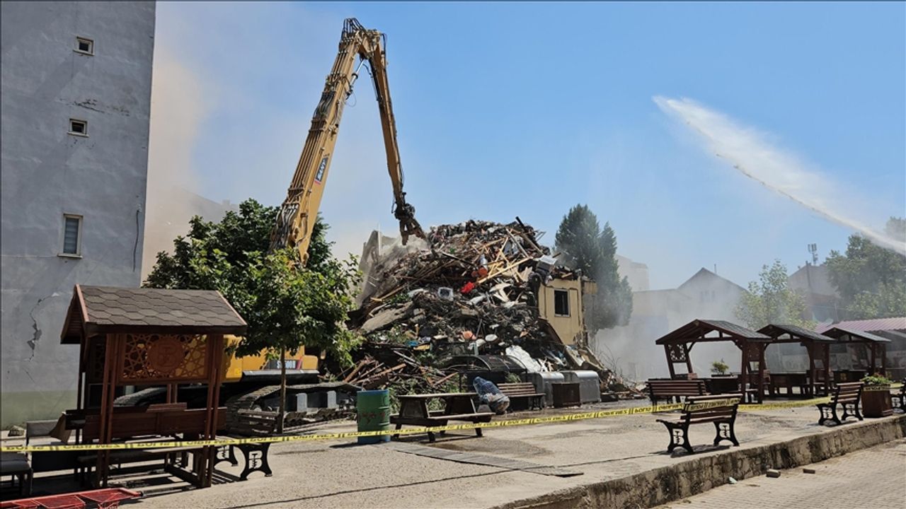 Ekipler, süreci tamamlanan binalarda kontrollü yıkım gerçekleştiriyor.