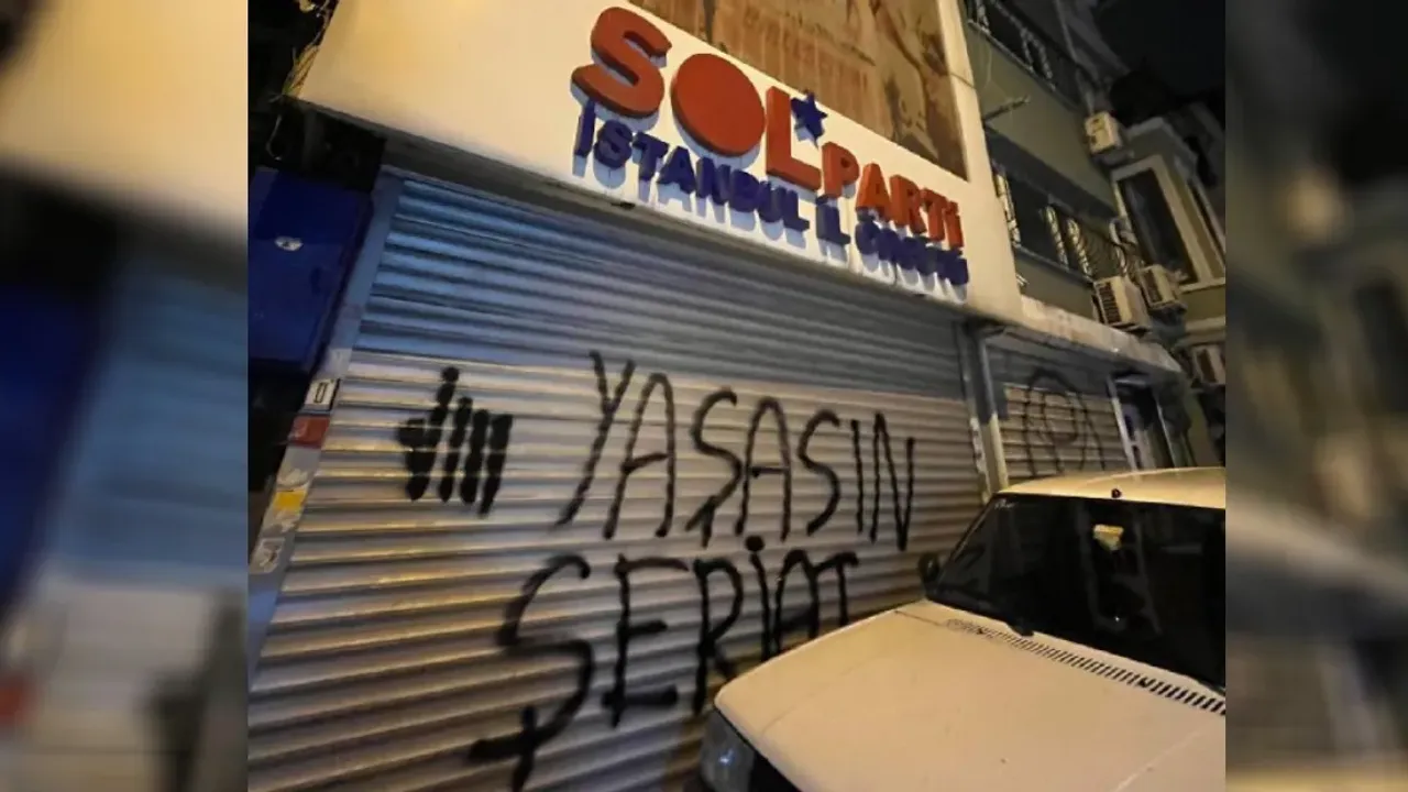 İstanbul’da, “Şeriata karşı laik, devrimci, demokratik cumhuriyet” pankartı asan SOL Parti’nin İstanbul İl Başkanlığı binası saldırıya uğradı. Akşam saatlerinde gerçekleşen olayda, kapalı olan il örgütü binasının kepengine kimliği belirsiz kişi ya da kişiler tarafından “Yaşasın Şeriat” yazıldı.