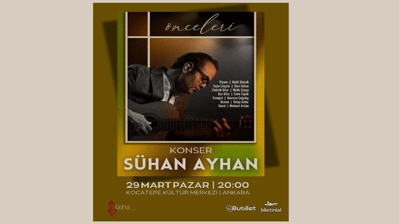 Besteci ve müzisyen Sühan Ayhan, kendi besteleri ve sevilen şarkılardan oluşan özel repertuvarıyla Ankaralı müzikseverlerle buluşmaya hazırlanıyor. “Önceleri” adlı konser, 29 Mart 2026 Pazar akşamı Kocatepe Kültür Merkezi’nde gerçekleştirilecek.