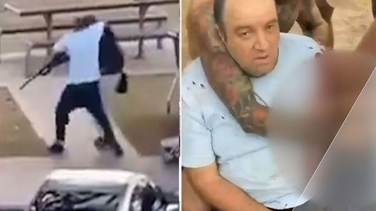 Dehşet anlarına ait görüntülerde, Sutherland bölgesinde manav dükkanı işleten 43 yaşındaki Ahmed el Ahmed’in, park halindeki bir aracın arkasına saklanarak saldırgana sessizce yaklaştığı görülüyor.