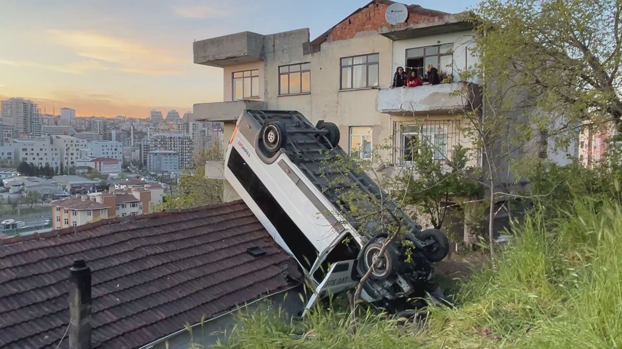 Kaza, dün saat 18.50 sıralarında Çağlayan Mahallesi'nde meydana geldi. Edinilen bilgiye göre, yokuş aşağı ters yönden indiği sırada şoförünün direksiyon hakimiyetini kaybettiği 34 LVU 535 plakalı okul servisi önce takla attı; ardından da evin çatısına düştü. Çevredekilerin ihbarı üzerine olay yerine itfaiye, sağlık ve polis ekipleri sevk edildi. İtfaiye ekipleri araçta sıkışan şoför Mustafa Fedaioğulları'nı bulunduğu yerden kurtardı.