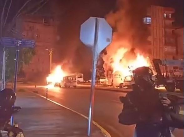Alevlerin kısa sürede büyümesi üzerine çevrede panik yaşanırken, araçlarda zaman zaman patlamalar meydana geldi. İhbar üzerine olay yerine polis ve itfaiye ekipleri sevk edildi. İtfaiye ekiplerinin müdahalesiyle yangın kontrol altına alınarak söndürüldü. Kundaklanan her iki araç da yanarak küle döndü.