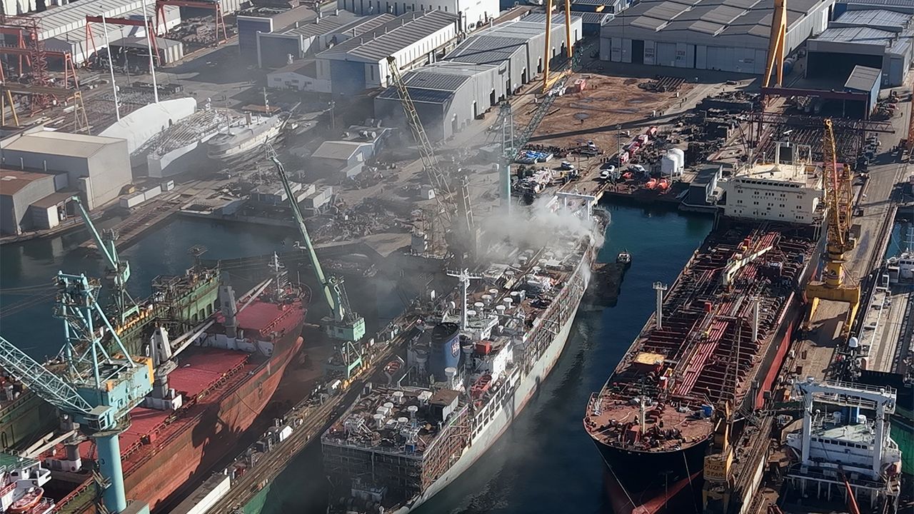 Tersaneler Caddesi'nde bulunan bir tersanedeki gemide henüz belirlenemeyen nedenle yangın çıktı.