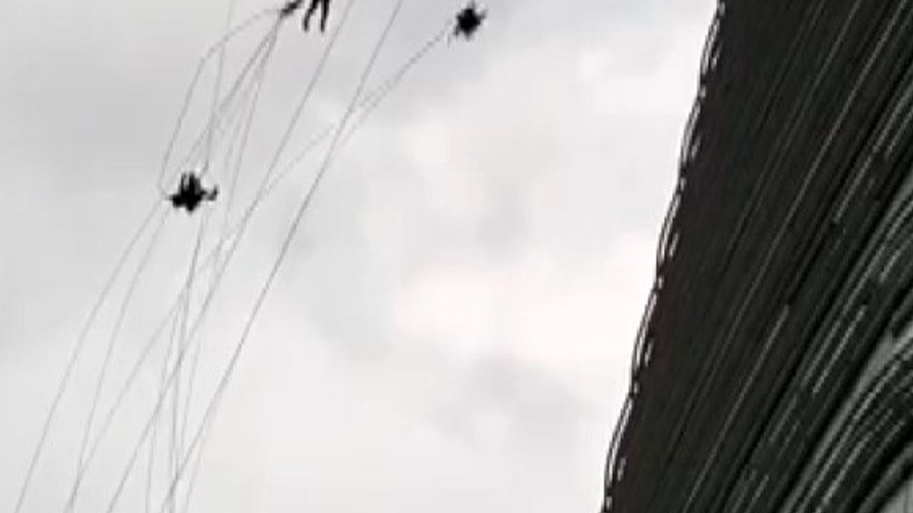 İşçiler metrelerce yükseklikten yaklaşık 2 buçuk saat boyunca inmeye çalıştı. İşçilerin halatlara sıkıca tutunduğu anlar çevredekiler tarafından cep telefonu kamerasıyla kaydedildi.