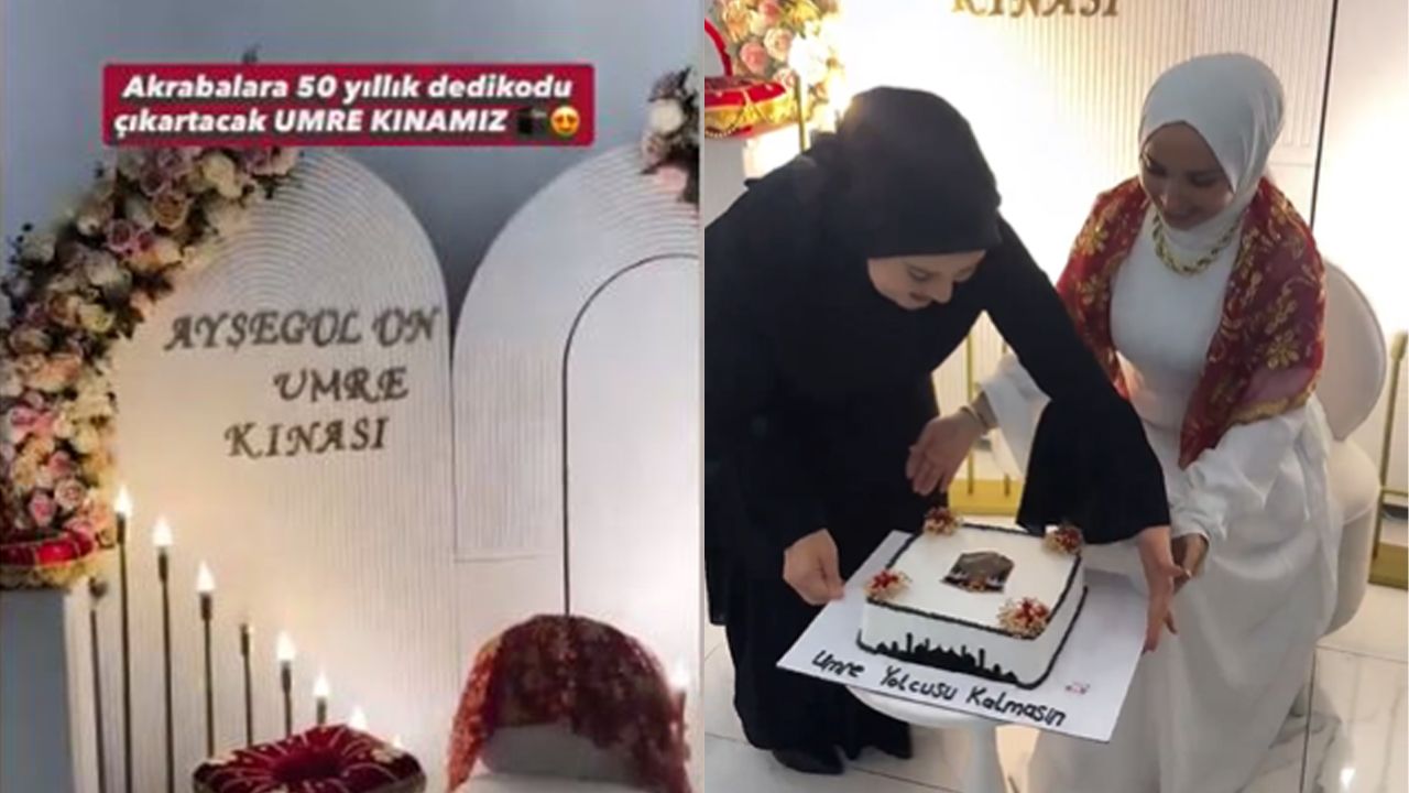 "Akrabalara 50 yıllık dedikodu çıkartacak umre kınamız" notunun yer aldığı videoda kınaya katılan kişiler ayrıca üzerine mum dikilen kınaları yaktı.
