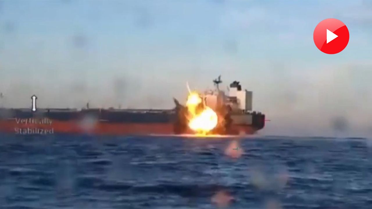 Görüntülerde, insansız deniz araçlarıyla gemilere saldırı düzenlendiği ve patlamaların yaşandığı görülüyor.