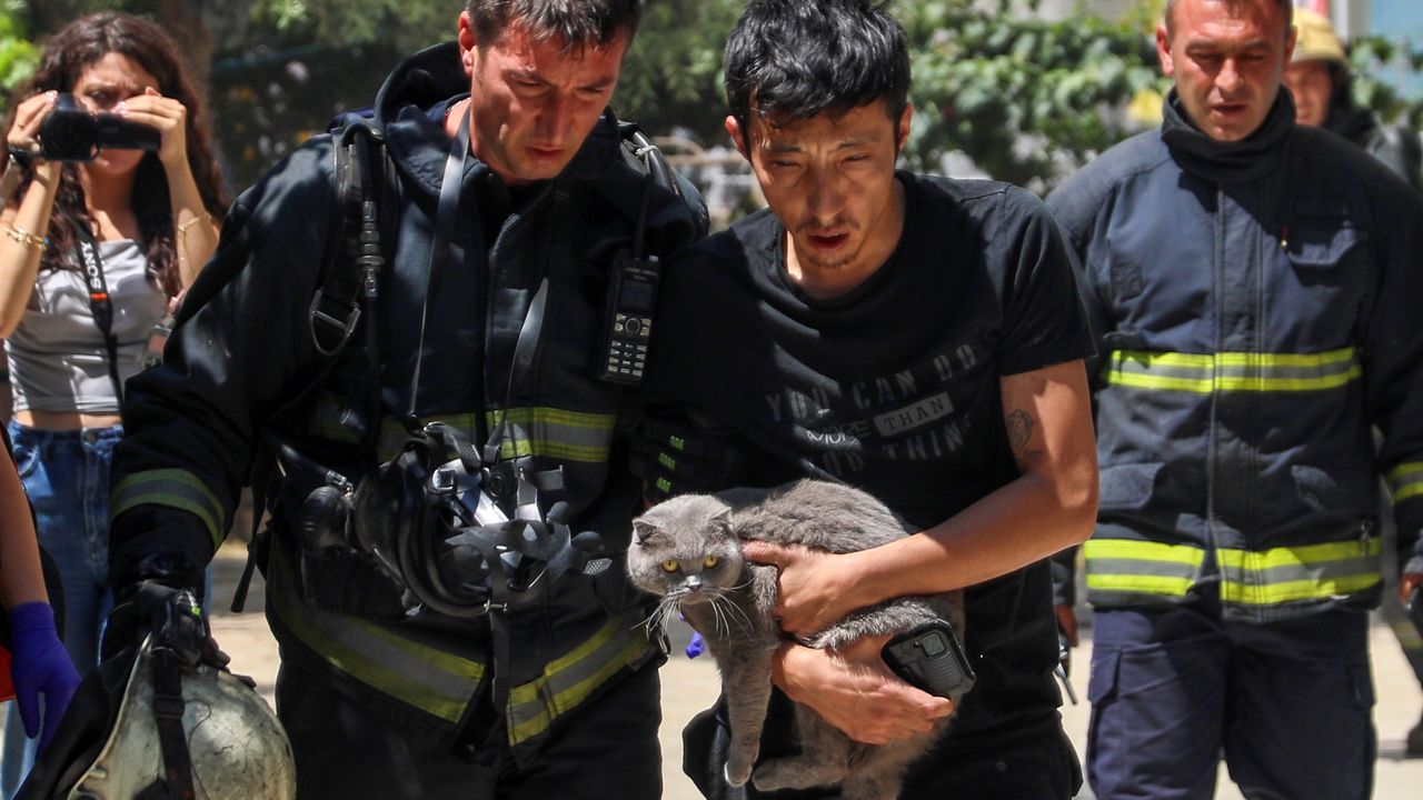 İtfaiye ve sağlık ekipleri, arka balkonda kedisiyle mahsur kalan Kaya'yı da güvenli şekilde binadan çıkardı. Yangında kucağından bir an olsun indirmediği kedisini apartmandan çıkarılınca da bırakmayan Sinan Kürşat Kaya, bir komşusunun kedisini kendisine vermesi talebini de reddetti. Kaya, kucağındaki kedisiyle birlikte tedbir amaçlı ambulansla hastaneye götürüldü.