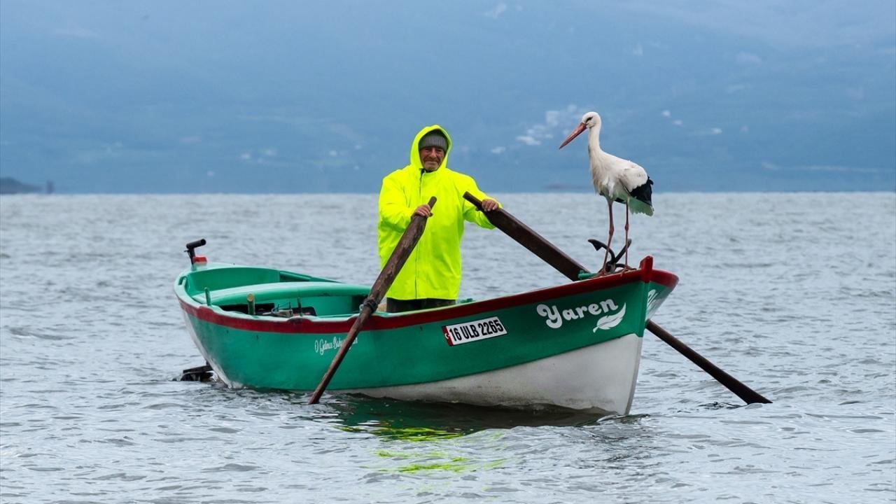 Ve bir leylek, o kayığın kenarına konuyor.